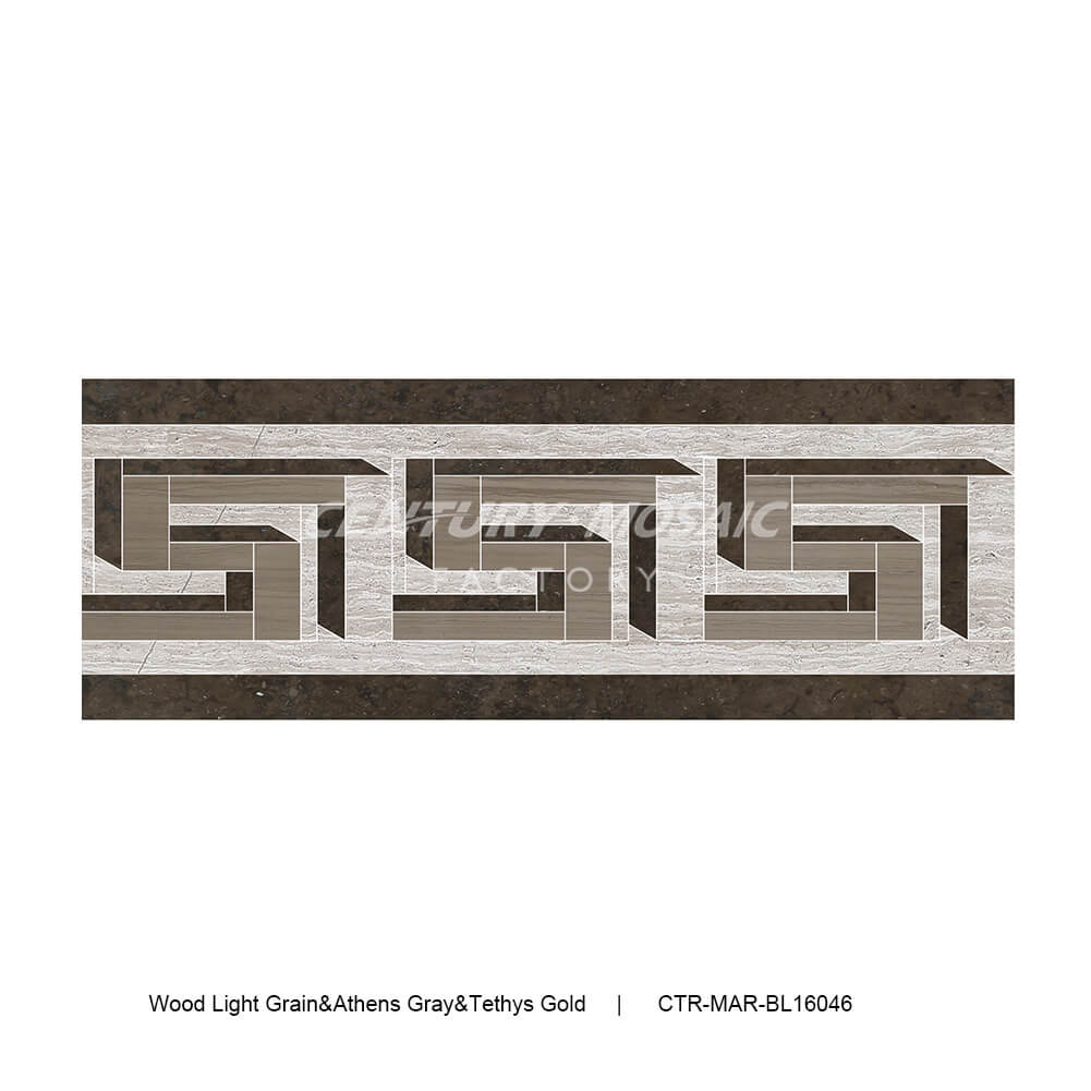 Wood Light Grain&Athens Gray&Tethys Gold Marble Polished Border Tile Wholesale