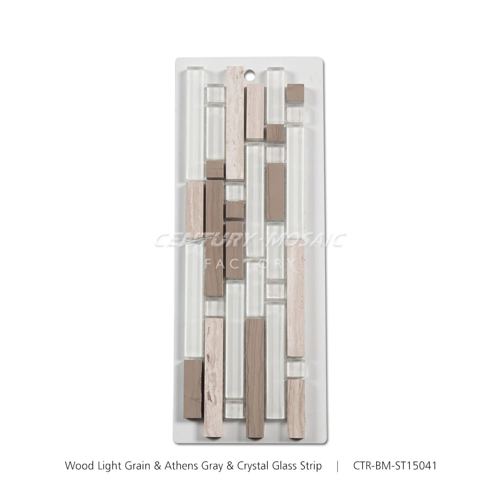 • Wood Light Grain & Athens Gray & Crystal Glass White and Brown Strip Mosaic Manufacturer