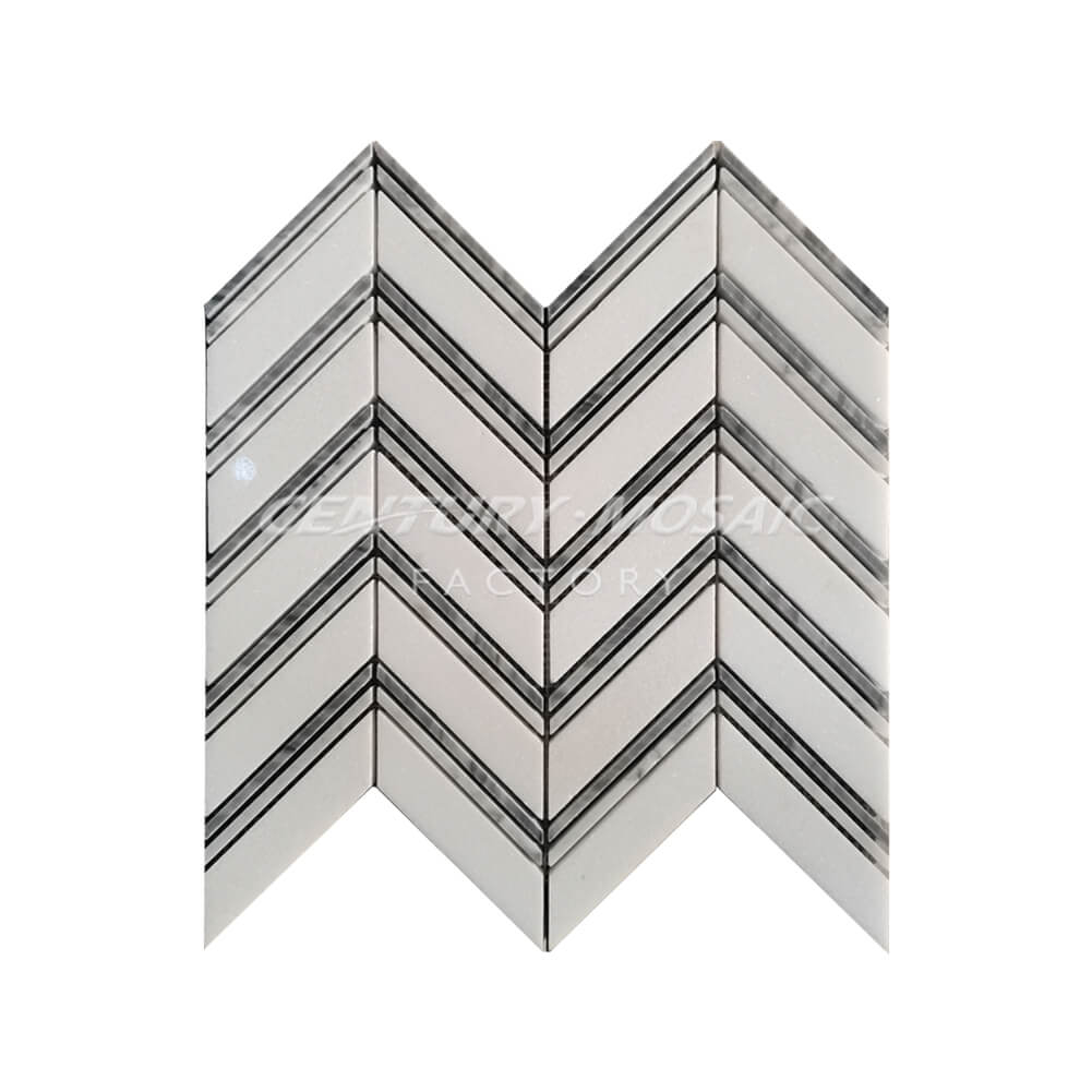 Thassos White and Bianco Cararra Chevron Polished Mosaic Tile In Stock